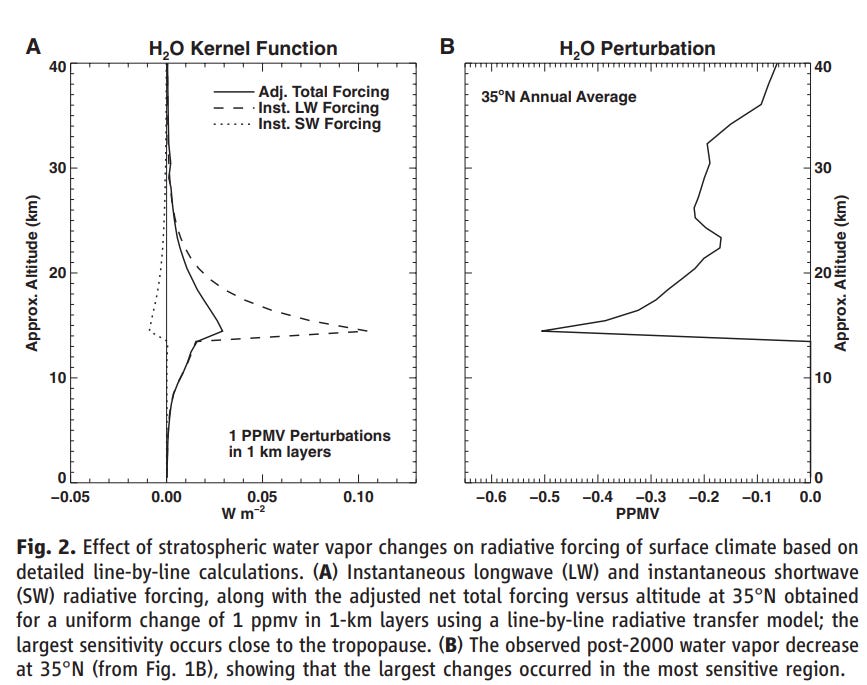 We are now at about 3.5 W/m² of extra forcing, total, from all greenhouse gases. The extra water vapor would cause some warming counteracting the activity of the calcite, but only in the same way that an eighteen-wheeler slows down when it runs over a stick. This is not a serious concern.