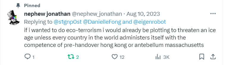 I’ll try to write a quick note in the next day or two if I have it in me to re-run the energy costs (I am all too aware of my laziness here). The point is that this is, indeed, DIY Geoengineering if you have the right equipment—probably just a large-ish steel box-like thing (lined with nickel—it’s a decent catalyst) with a ceramic coat to protect the surroundings from its heat, a propane tank, a large jug of water, a balloon, some calcite dust and a nozzle to spew it out of; SCoPeX’s untimely cancellation makes the case for wildcat experiments on particle delivery even stronger. You heat six or seven kilos of baking soda up on the thing (producing sodium carbonate) and bubble it through a water-and-sodium-carbonate solution—or merely onto the sodium carbonate—for a few minutes to clear the CO2 out, then fill the balloon. Capex costs for a personal unit would probably run a few hundred at scale; the heat required is considerable but probably not unworkable. A few hundred thousand concerned citizens could get us back to preindustrial temperatures in their backyards.